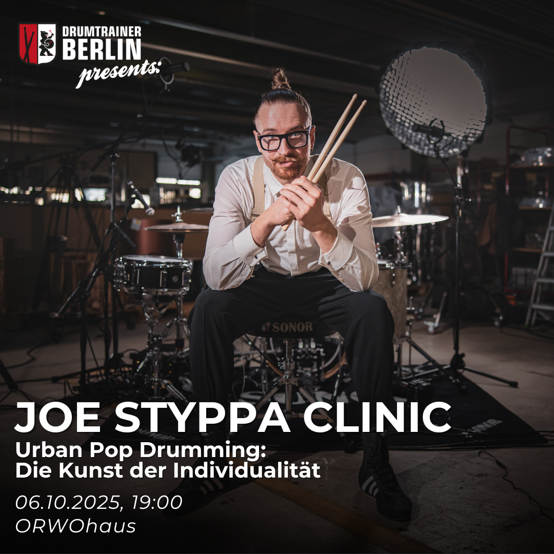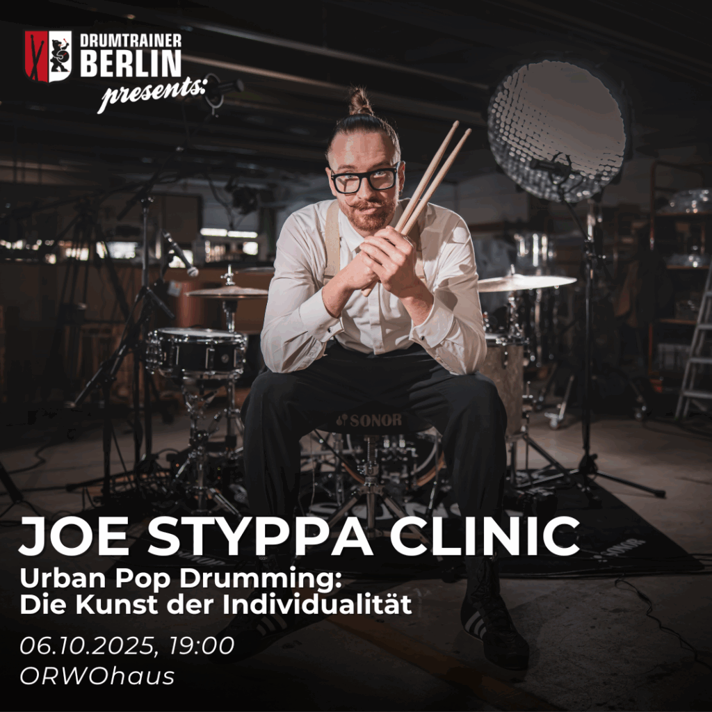 As part of his clinic tour across Germany, Joe Styppa will be stopping by our school in Berlin to give a clinic on musicality and artistry. Joe has a defined, signature voice on the drums and he will be giving a clinic showcasing how each and every drummer can refine their own.