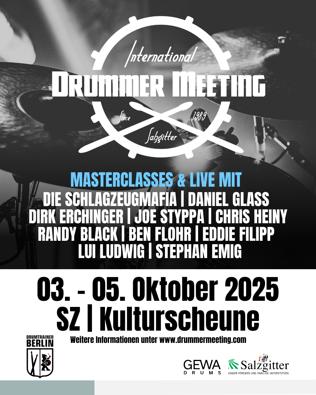 Im Oktober ist es wieder soweit: Das 37. International Drummer Meeting steht vor der Tür! Vom 3. bis 5. Oktober 2025 verwandelt sich die Kulturscheune in Salzgitter-Lebenstedt wieder in einen Hotspot für alle, die Rhythmus im Blut haben.